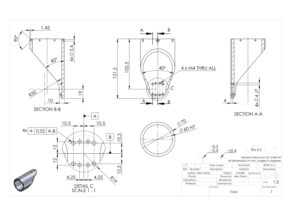 Clinical needs assessment, CAD, technical drawings, iterative prototyping